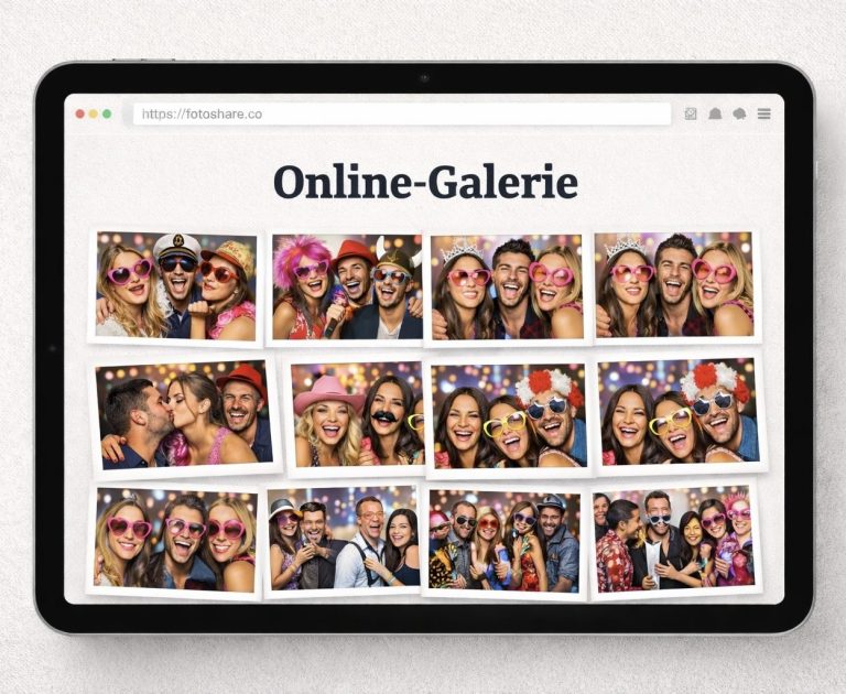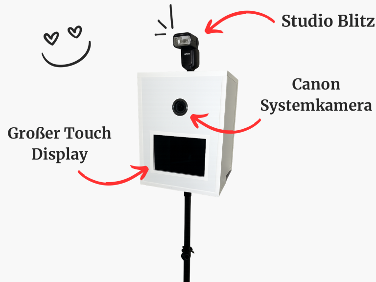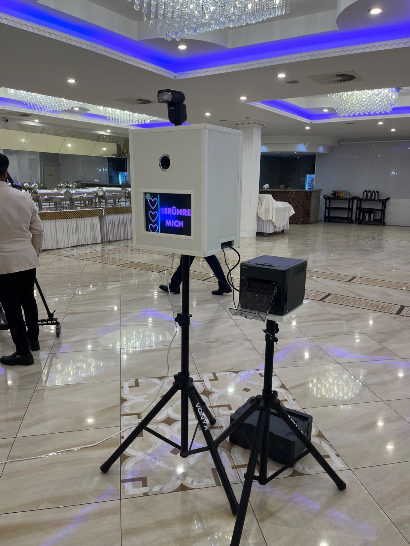 Moderne Fotobox mit Sofortdruck, Requisiten, Lieferung & Aufbau
